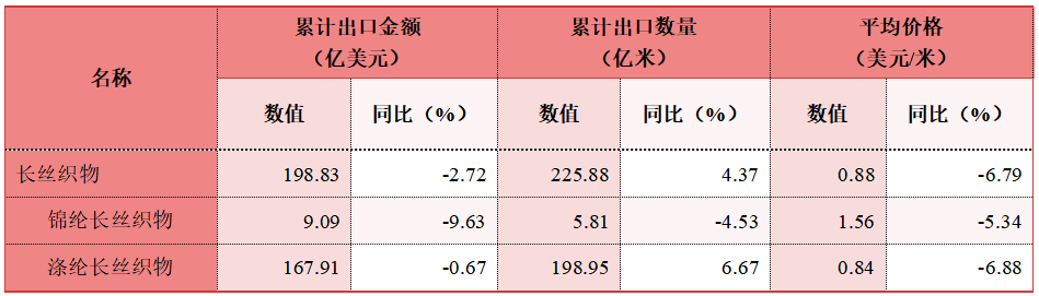 表2 2023年1~12月我国长丝织物累计出口情况